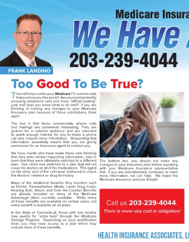 of these benefits are available on certain plans, not Call us 203-239-4044.