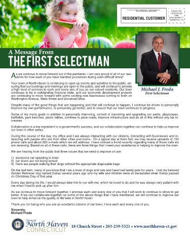 a high level of services to each and every one of you as our valued residents. Our town Michael J. Freda