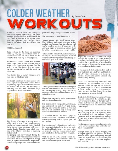 Going from summer to winter workouts re- you can work out in the warmth and pri-