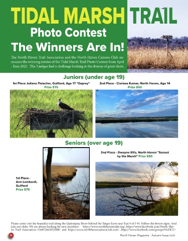 nounce the winning entries of the Tidal Marsh Trail Photo Contest from April