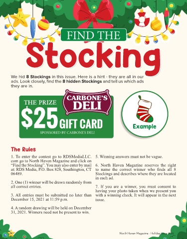“Find the Stocking”. You may also enter by mail 6. North Haven Magazine reserves the right